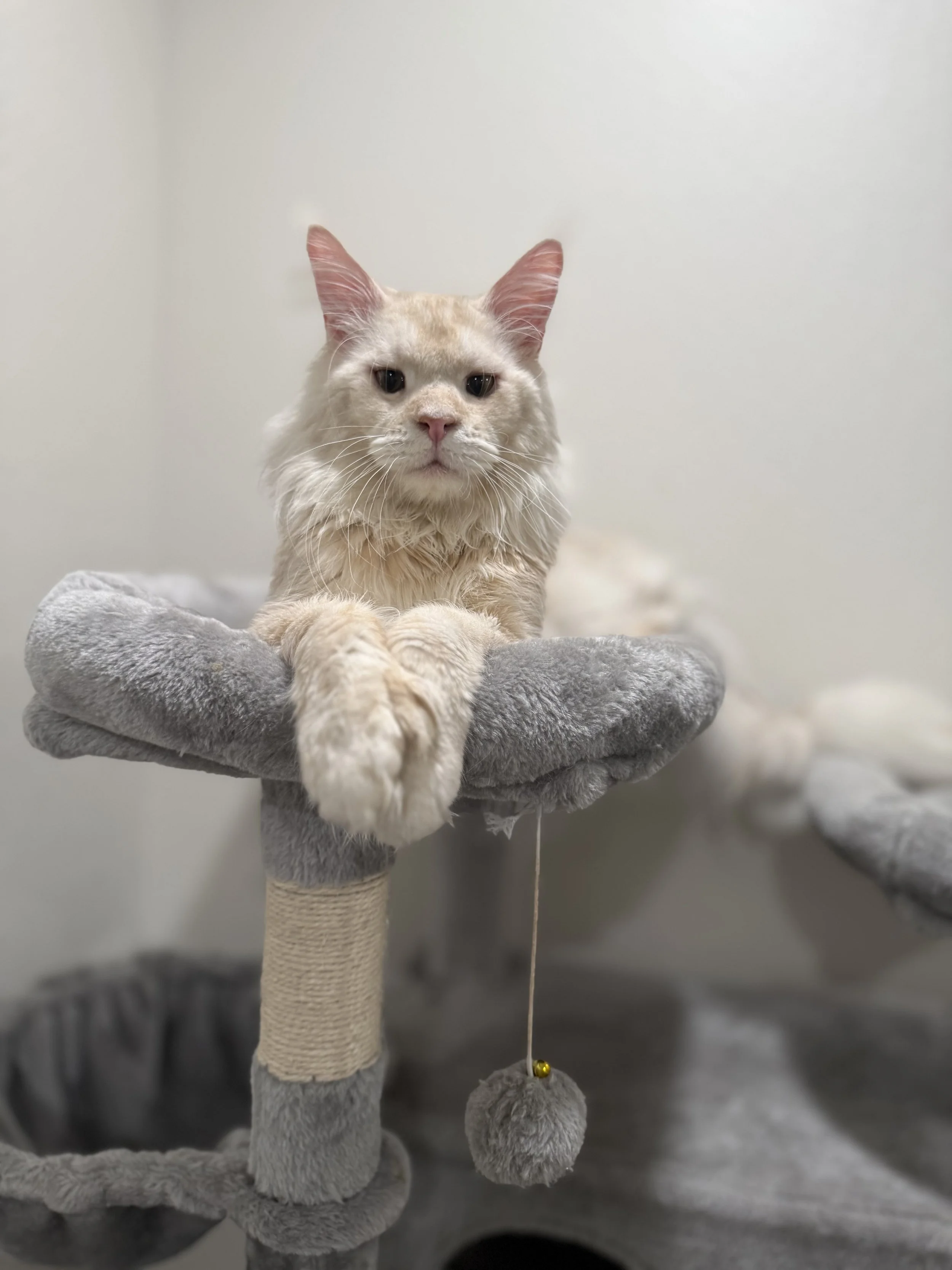 Arthur is a handsome black silver tabby Maine Coon kitten with classic features and a striking coat. He is from DNA-tested and HCM-scanned parents, and will be microchipped and neutered prior to adoption.